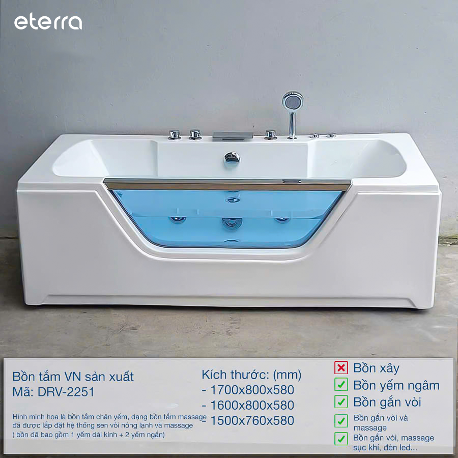 Bồn Tắm Yếm Ngâm ETERRA DRV-2251 Có Massage – Đã Gắn Sẵn Vòi Tặng