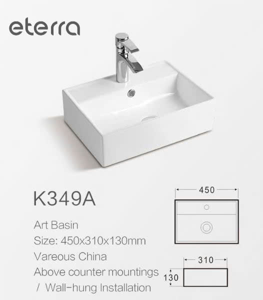 Chậu lavabo treo tường ETR.K349A có kích thước 450x310mm, lắp đặt linh hoạt, phù hợp với: